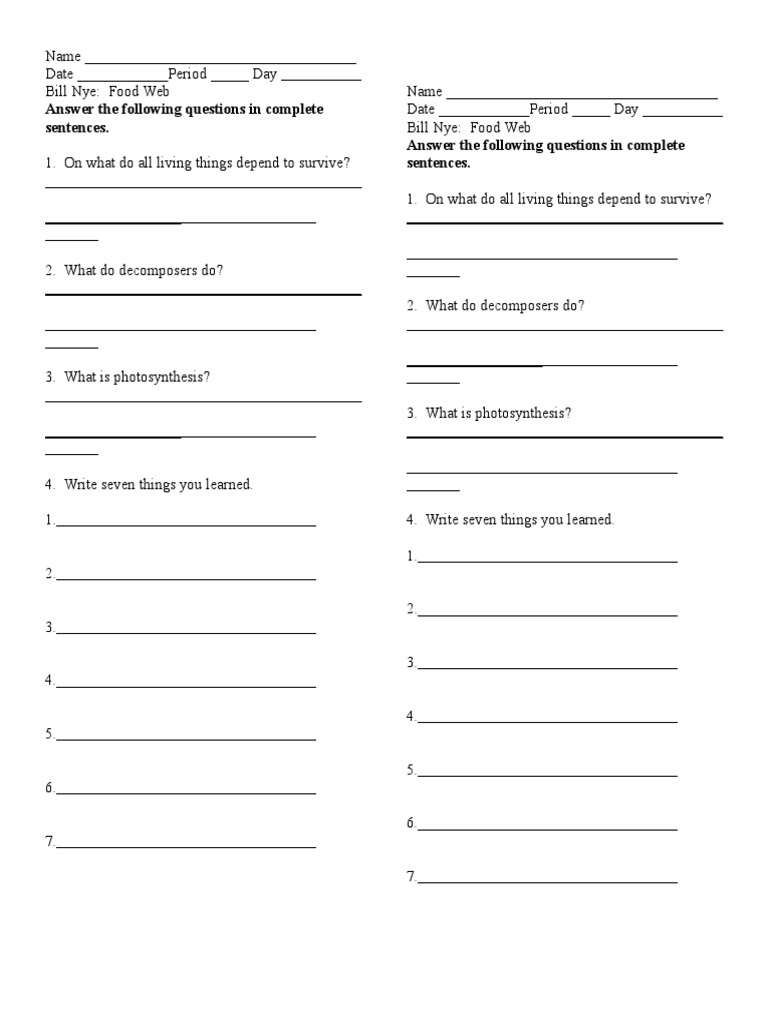 Free Differentiated Worksheet For The Bill Nye The Science Guy