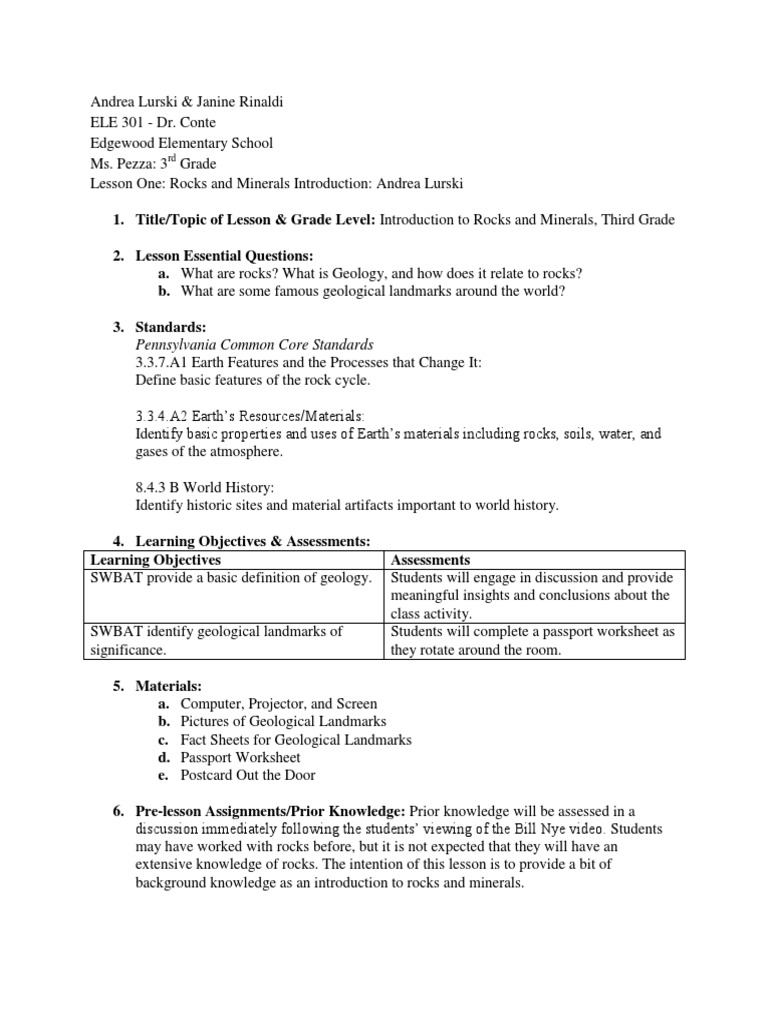 Lesson One Rocks And Minerals Earth Geology