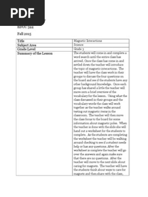 Educ 344 Megnet Lesson Plan Magnetism Vocabulary